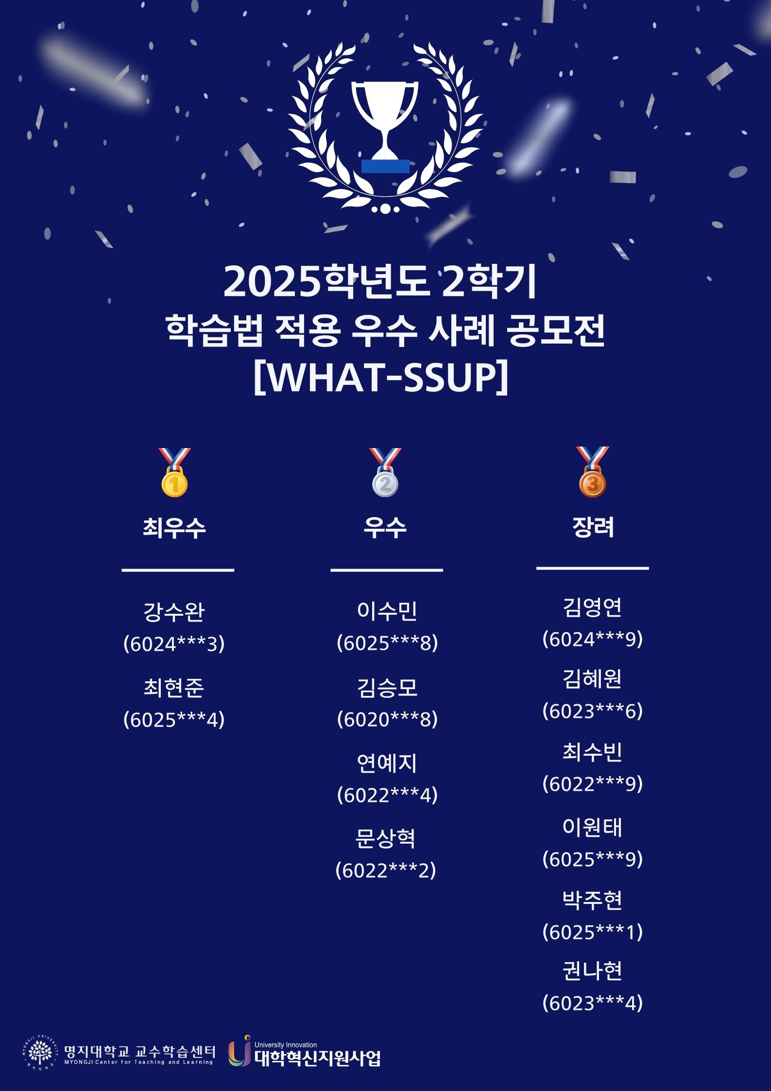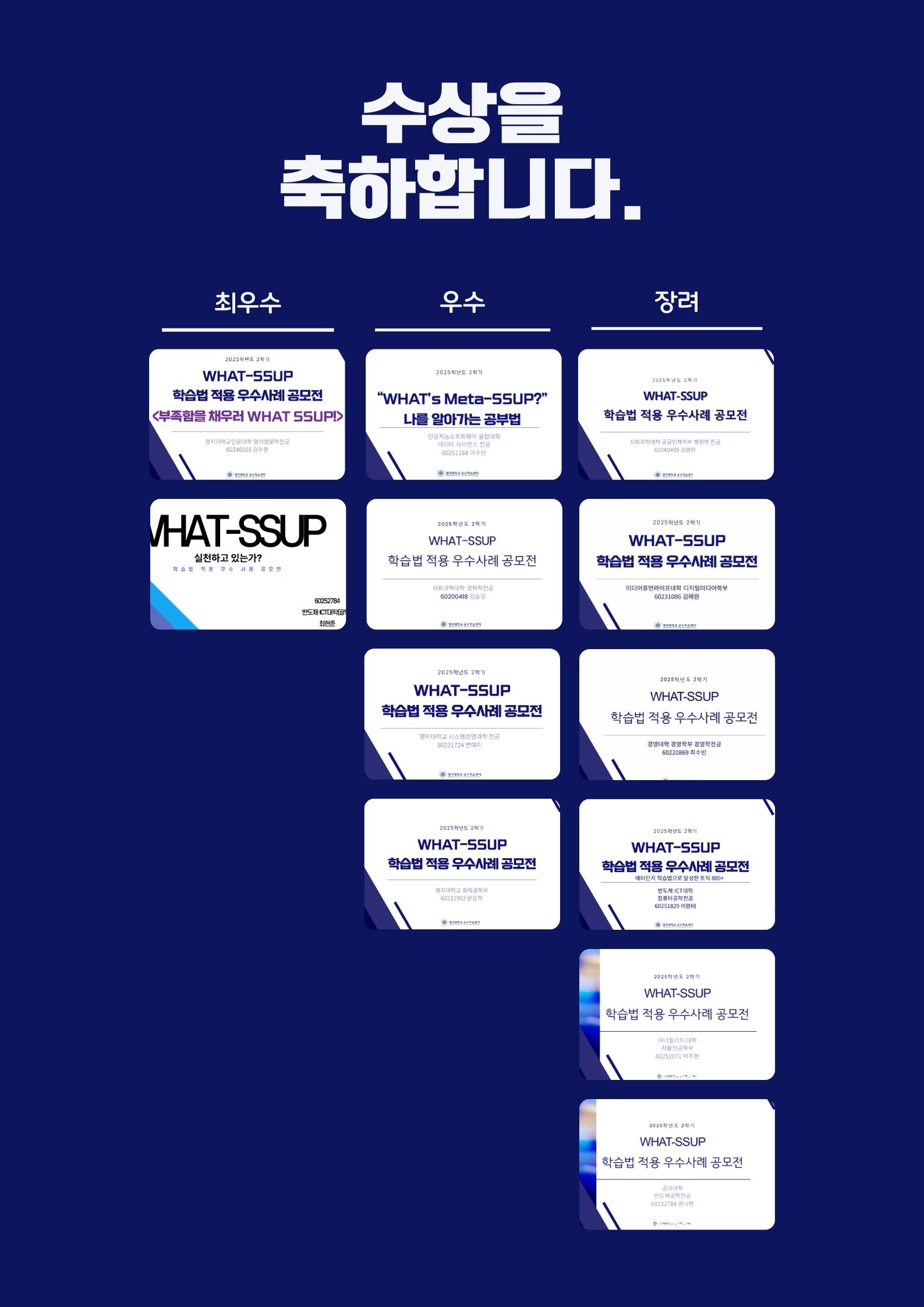 2025학년도 2학기 학습법 적용 우수 사례 공모전 [What-SSUP] 수상자 안내