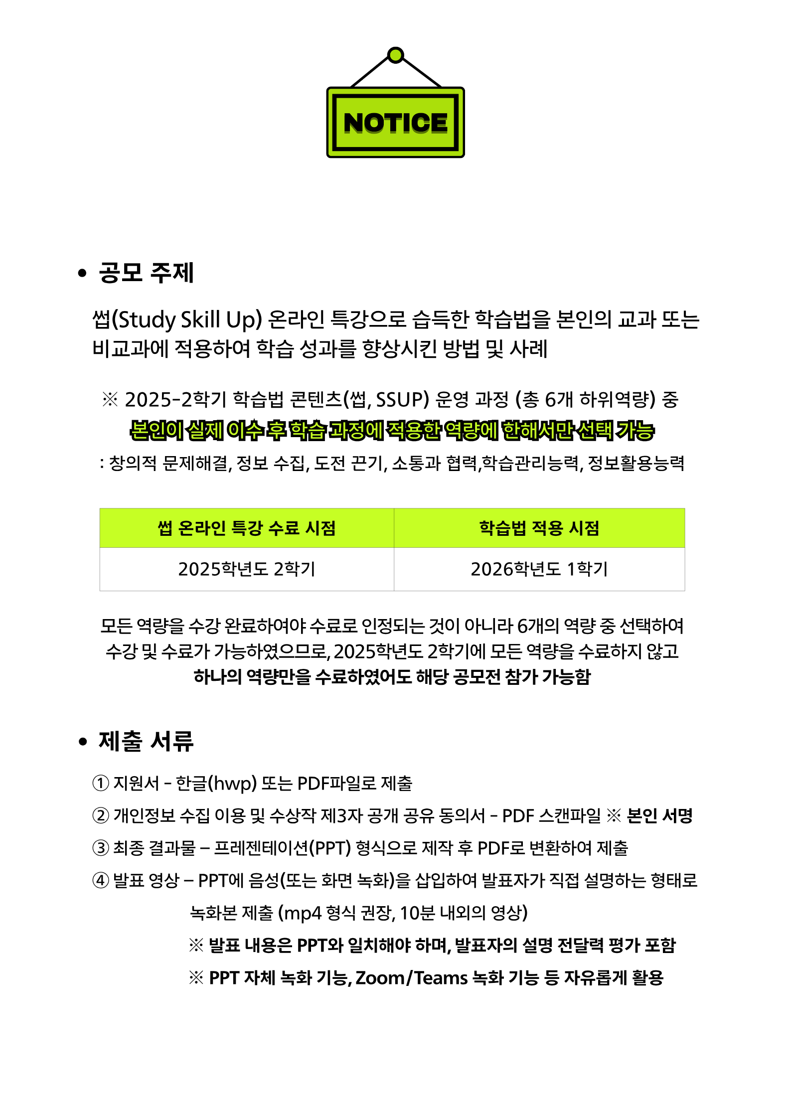 [What-SSUP] 2026학년도 1학기 학습법 적용 우수 사례 공모전 안내